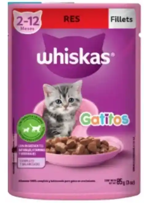 ¡Consiente a tu felino con el Alimento Húmedo Whiskas! Este alimento, ideal para gatitos ofrece una deliciosa combinación de sabores como res y atún.
