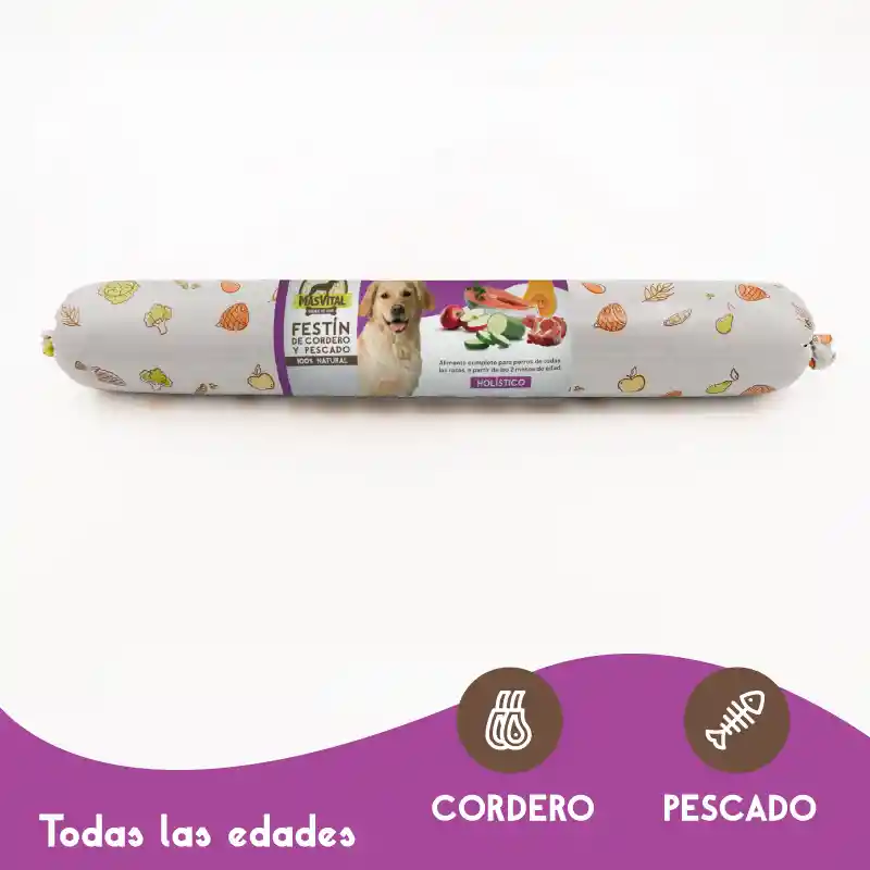 Alimento Completo, Húmedo, Precocido, 100% Natural, para perros de todas las razas a partir de los 2 meses de edad a base de proteínas frescas de Cordero y Pescado.