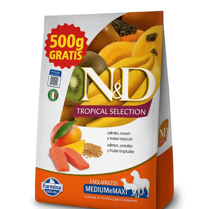 ND Perro Adulto Med/Grand 2kg + 500g Gratis es la elección ideal para aquellos dueños que buscan proporcionar una alimentación de alta calidad a sus mascotas. Este alimento seco, formulado específicamente para perros de razas medianas y grandes, está diseñado para satisfacer las necesidades nutricionales de los perros adultos, asegurando que se mantengan activos y saludables. Con un delicioso sabor a cerdo, este producto de la marca ND TROPICAL, fabricado por Farmina, ofrece un alto contenido de proteína bruta del 27%. Esta característica es fundamental para el desarrollo muscular y la energía diaria de tu perro, ayudando a mantener su vitalidad y bienestar general. La cuidadosa selección de ingredientes garantiza que tu mascota reciba una dieta equilibrada y nutritiva. Al elegir ND Perro Adulto, no solo estás alimentando a tu perro, sino que también estás contribuyendo a su salud a largo plazo, promoviendo un pelaje brillante y una buena salud digestiva. Optar por ND Perro Adulto Med/Grand es una decisión que refleja tu compromiso con la calidad y el bienestar de tu mascota. Dale a tu perro la alimentación que merece y observa cómo florece con cada bocado.