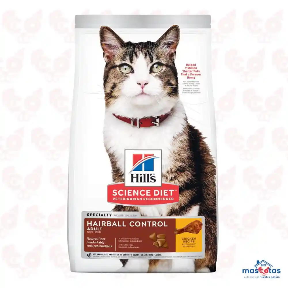 El alimento seco para gatos Hill's Science Diet Hairball Control Adult proporciona nutrición para ayudar a evitar la formación de bolas de pelo en gatos. Se recomienda para: Gatos adultos de 1-6 años de edad propensos a las bolas de pelo. No se recomienda para: Gatitos y gatas gestantes o lactantes. Durante la gestación o lactancia, las gatas deben cambiar al alimento seco para gatos Hill’s® Science Diet® Kitten o Hill's® Science Diet® Kitten Indoor.