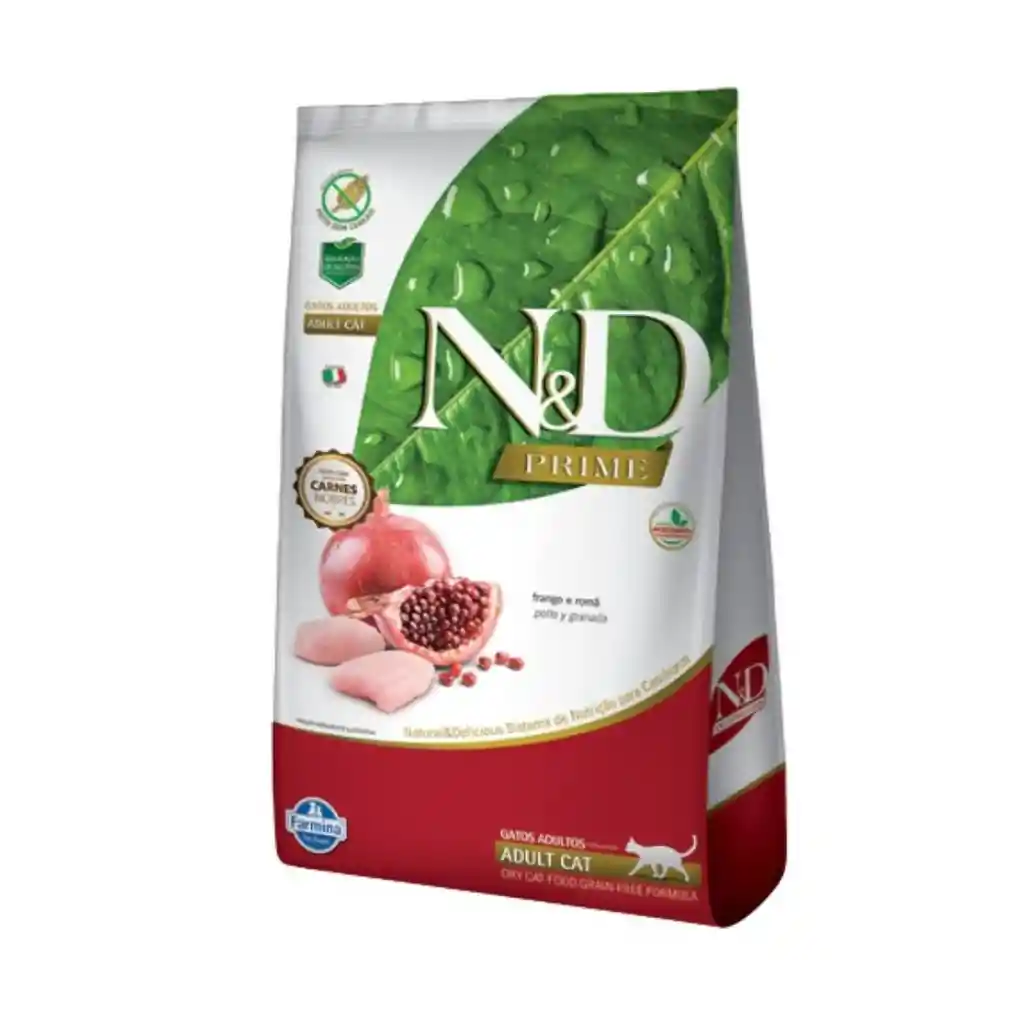N&d Prime Feline Frango Adulto 7,5 Kg Pollo Y Granada Alimento Completo Y Balanceado Para Gatos Adultos Composicióncarne De Pollo (mecánicamente Separada), Harina De Vísceras De Aves (mín. 10%), Huevo Deshidratado, Harina De Pescado, Harina De Torrezno (proteína Aislada De Cerdo), Almidón De Papa, Almidón De Mandioca, Aceite De Pollo, Aceite De Pescado, Pulpa De Remolacha, Cáscara De Guisante, Alfalfa Deshidratada, Lignocelulosa, Semilla De Psyllium, Levadura Seca De Cervecería, Zanahoria Deshidratada, Espinaca Deshidratada, Naranja Deshidratada, Manzana Deshidratada, Arándano Deshidratado, Extracto De Granada (mín. 0,08%), Extracto De Té Verde, Extracto De Aloe Vera, Cúrcuma En Polvo, Beta Caroteno, Aditivos Prebióticos (fos Y Mos), Dl-metionina, Taurina, L-carnitina, Sulfato De Condroitina, Sulfato De Glucosamina, Aditivos Adsorbentes (extracto De Yucca Y Zeolita), Hidrolizado De Hígado De Pollo Y Cerdo, Vitaminas (a, D3, E, B1, B2, B6, B12, C, Biotina, Niacina, Ácido Pantoténico, Ácido Fólico, Cloruro De Colina), Cloruro De Potasio, Hierro Aminoácido Quelato, Cobre Aminoácido Quelato, Zinc Aminoácido Quelato, Manganeso Aminoácido Quelato, Proteinato De Selenio, Yodato De Calcio, Propionato De Calcio, Concentrado De Tocoferoles. Eventual Sustitutivo: Proteína Hidrolizada De Pescado Enriquecimiento Mínimo Por Kg Vitamina A 18.700ui Vitamina D3 1.250ui Vitamina E 510ui Vitamina B1 8,4mg Vitamina B2 17mg Vitamina B6 6,5mg Vitamina B12 80mcg Vitamina C 255mg Biotina 1,25mg Niacina 127mg Ácido Pantoténico 42mg Ácido Fólico 1,25mg Colina 2.400mg Hierro 40mg Cobre 13mg Zinc 145mg Manganeso 48mg Selenio 0,15mg Yodo 1,5mg. Niveles De Garantía Humedad (máx.) 8% Proteína Bruta (mín.) 44% Extracto Etéreo (mín.) 20% Materia Fibrosa (máx.) 1,8% Materia Mineral (máx.) 8,5% Calcio (mín.) 0,8% Calcio (máx.) 1,5% Fósforo (mín.) 0,8% Sodio (mín.) 2.000mg/kg Potasio (mín.) 5.000mg/kg Magnesio (mín.) 900mg/kg Omega 6 (mín.) 25g/kg Omega 3 (mín.) 3.000mg/kg Dha (mín.) 900mg/kg Epa (mín.) 700mg/kg Taurina (mín.) 2.000mg/kg L-carnitina (mín.) 100mg/kg Metionina (mín.) 8.000mg/kg Lisina (mín.) 14g/kg Sulfato De Glucosamina (mín.) 300mg/kg Sulfato De Condroitina (mín.) 200mg/kg Manano-oligosacáridos (mín.) 400mg/kg Fructo-oligosacáridos (mín.) 600mg/kg. Valor Energético Em Kcal/kg 4132 - Mj/kg 17,29