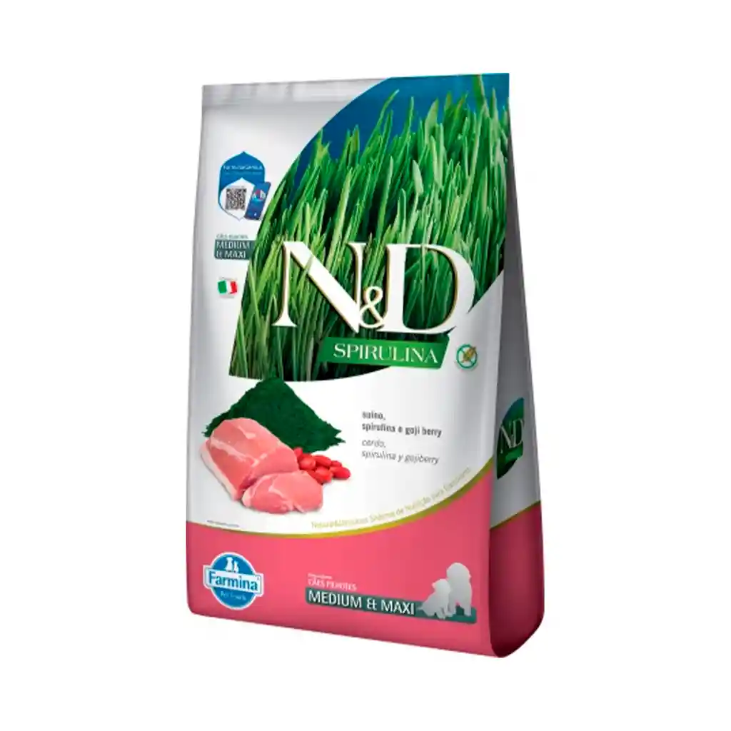Ha Sido Especialmente Diseñada Para Cachorros De Razas Medianas Y Grandes, Así Como Para Hembras Gestantes O Lactantes. Su Fórmula Combina Cerdo Fresco Como Principal Fuente De Proteína Animal Con Espirulina, Un Superalimento Rico En Antioxidantes, Vitaminas Y Minerales Que Favorecen El Crecimiento Saludable, Fortalecen El Sistema Inmune Y Contribuyen Al Desarrollo Óptimo Del Cachorro. Además, Es Un Alimento Grain Free (libre De Cereales Tradicionales), Ideal Para Cachorros Con Digestiones Sensibles. Características Alimento Super Premium Para Cachorros De Razas Medianas Y Grandes. Con Cerdo Fresco Y Deshidratado Como Fuente Principal De Proteína Animal. Enriquecido Con Espirulina, Reconocida Por Su Aporte De Antioxidantes Y Nutrientes Esenciales. Fórmula Grain Free, Libre De Maíz, Trigo Y Soya. Incluye Frutas, Vegetales Y Extractos Naturales Que Aportan Vitaminas Y Minerales. Croquetas Adaptadas Al Tamaño De Cachorros Medianos Y Grandes. Contiene Ácidos Grasos Omega 3 Y 6 Que Favorecen El Desarrollo Cerebral, La Piel Y El Pelaje. Desarrollado Con Respaldo Científico Y Control Veterinario. Beneficios Crecimiento Sano Y Fuerte: Proteínas De Alta Calidad Y Minerales Para El Desarrollo De Huesos Y Músculos. Desarrollo Cognitivo: Aporte De Ácidos Grasos Esenciales Y Antioxidantes. Digestión Saludable: Fibras Y Prebióticos Que Cuidan La Flora Intestinal. Piel Y Pelaje Saludables: Gracias A La Combinación De Espirulina, Omega 3 Y Vitaminas. Refuerzo Inmunológico: Antioxidantes, Vitaminas Y Minerales Que Fortalecen Las Defensas Naturales. Energía Equilibrada: Carbohidratos De Bajo Índice Glucémico Que Mantienen La Vitalidad Sin Riesgo De Sobrepeso. Ingredientes Principales Cerdo Fresco Y Deshidratado Espirulina Grasa De Pollo Y Aceite De Pescado Frutas Y Vegetales (granada, Manzana, Arándano, Espinaca) Minerales Y Vitaminas Esenciales Extractos Naturales Con Propiedades Antioxidantes
