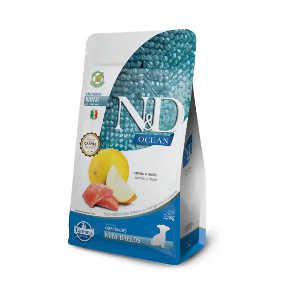 N&D Natural And Delicious Ocean Canine Salmón y Melón Puppy Mini, es un alimento completo y balanceado para perros cachorros de razas pequeñas y para hembras que se encuentran es proceso de gestación y lactancia. Beneficios: 94% de proteína animal No contiene conservantes artificiales Croqueta hecha a la medida de su mordida Alta Palatabilidad