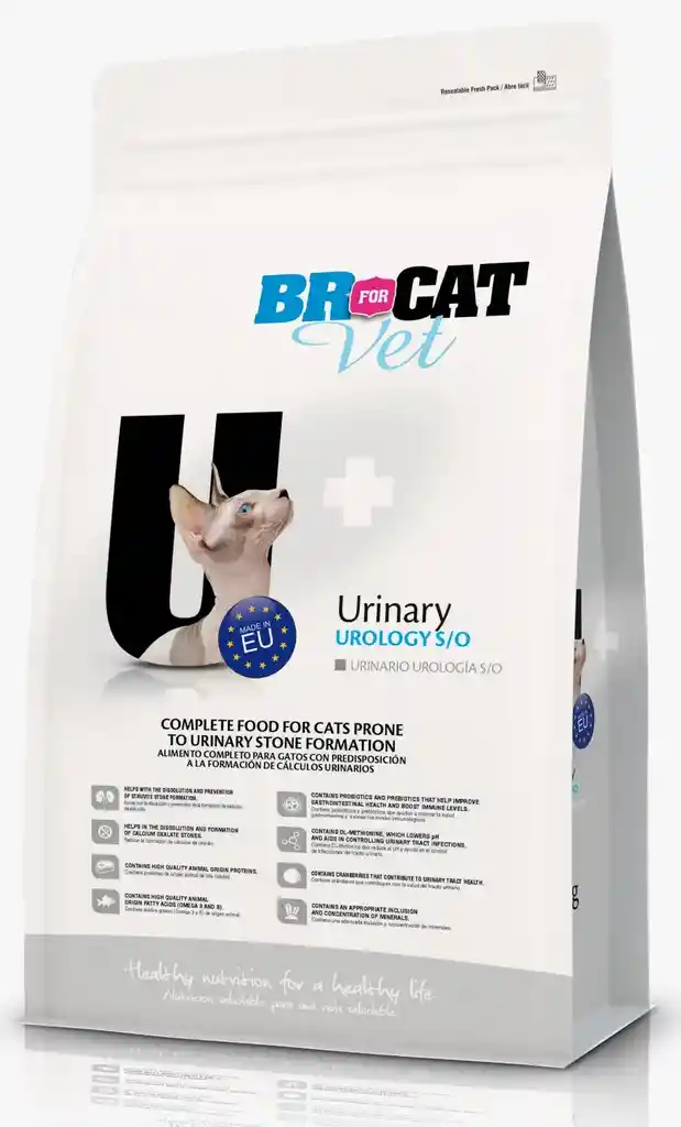 BR FOR CAT VET URINARIO S/O es un alimento completo para suministrar a gatos adultos de todas las razas con predisposición a la formación de cálculos renales.