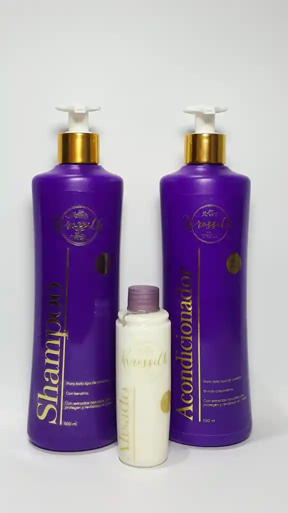 * Alisado sin formol 100 ml:Alcanza para 1 máximo 2 aplicaciones.Libre de formol y químicos no compatibles con la fibra capilar.Te brinda restauración debido a que tiene extractos naturales y aminoácidos.Se puede usar en todo tipo de cabello. liso con frizz. ondulado. crespo. etc, desde la primera aplicación obtendrás un liso hasta el 100%.En cuanto a la facilidad de aplicar y la comodidad de la clienta es muchísimo mejor porque no pica. no arde e incluso si lo pueden usar mujeres embarazadas. lactando. niños. etc.Y lo mejor. se enjuaga de una vez para que puedas ver los resultados.Su duración es de 3 a 6 meses.* Shampoo post cuidado 500 ml: Es de uso diario especializado en fortalecer las fibras capilares para mayor crecimiento y el cuidado del alisado.Es libre de sal. parabenos y cualquier derivado del petróleo.Si tiene keratina precisamente para prolongar el tiempo del alisado y que no se caiga.* Bálsamo acondicionador post cuidado 500 ml: Es de uso diario especializado en fortalecer las fibras capilares para mayor crecimiento y el cuidado del alisado.Es libre de sal. parabenos y cualquier derivado del petróleo.Te brinda suavidad. brillo e hidratación.Con registro sanitario INVIMA.No te arriesgues. cuida tu cuerpo con productos que si están vigilados por las autoridades.