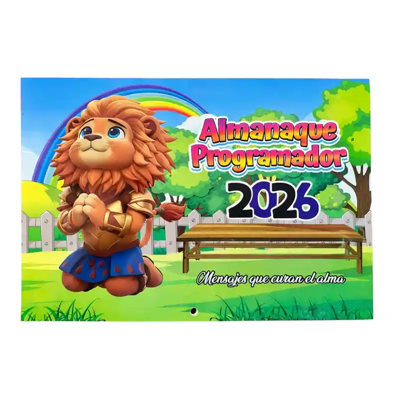 Almanaque Cristiano 2026 - Mensajes que curan el alma Incluye: 1 unidad Año: 2026 Medidas: 34 cm x 24 cm Formato: Horizontal Características: - Ideal para organizar tu año mientras fortaleces tu fe día a día. - Cada mes incluye mensajes bíblicos inspiradores que transmiten esperanza, amor y fortaleza espiritual. - Su diseño es colorido, tierno y familiar, con ilustraciones llamativas que lo hacen perfecto para el hogar, la oficina, iglesias o espacios de estudio. - Cuenta con una diagramación clara, espacios para notas y resaltado de fechas importantes, facilitando la planeación diaria.