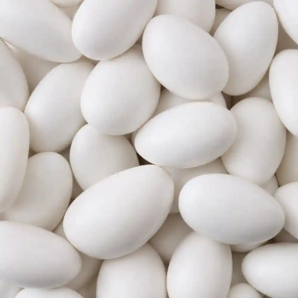 Almendra confitada en color blanca pastel, ideal para decoración en pasteles, como dulces snacks para reuniones especiales. Peso: 250 g
