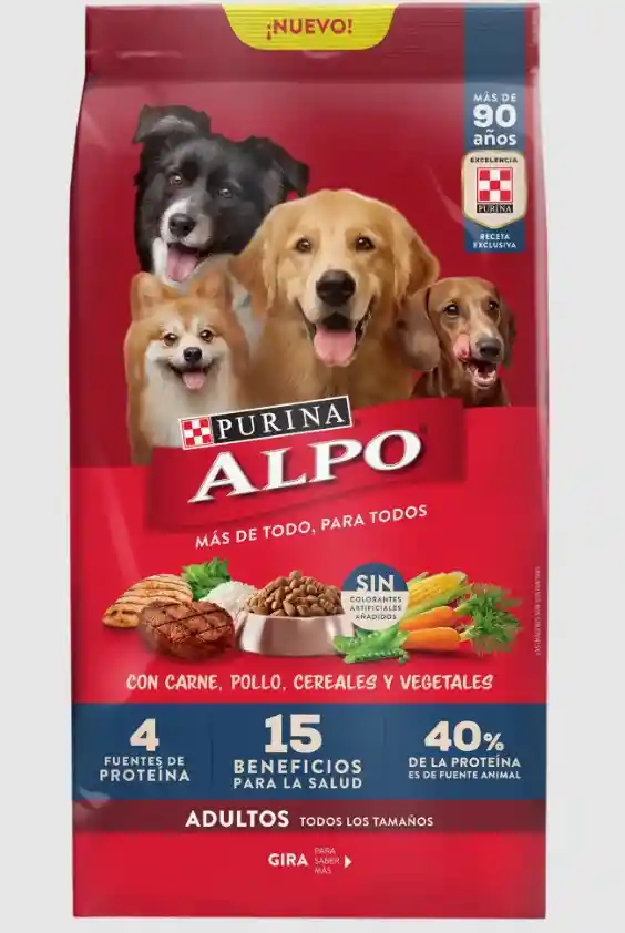 Alimento completo y balanceado para perros adultos de todos los tamaños. Tu mejor amigo es capaz de sacarte una sonrisa, llenarte de energía, o de calma para disfrutar de esa vida sencilla que tanto te gusta. En PURINA® ALPO® te ofrecemos un alimento que, al igual que tu perro, también lo tiene TODO.