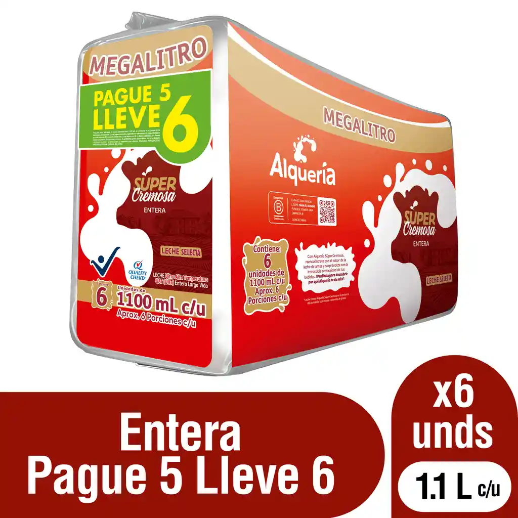 Leche entera súper cremosa, reencuéntrate con el sabor de la leche de antes y sorpréndete con la irresistible cremosidad de tus bebidas. Contiene 6 unidades por 1100 mL c/u.