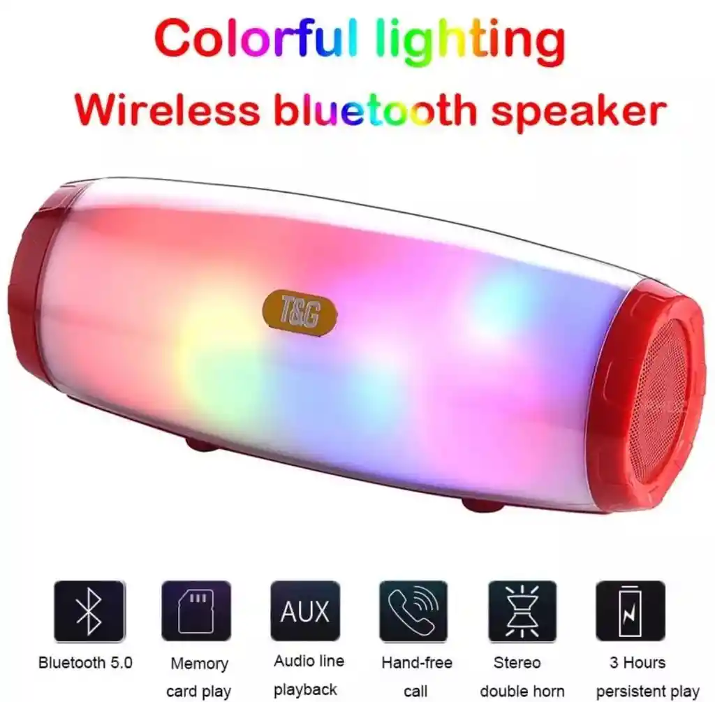 Altavoz Bluetooth portátil con Luces LED - V5.0, 1200mAh Cualquier lugar y momento puede ser ideal para una fiesta con este colorido altavoz Bluetooth con luces LED. Le ofrece hasta 3 horas de música para combinar con un colorido espectáculo de luz que va de acuerdo con la melodía musical. Las unidades pasivas mejoradas en ambos lados proporcionan bajos ricos y profundos. La tecnología Bluetooth 5.0 proporciona una conexión estable y sin demora para la máxima experiencia. Características: Bluetooth 5.0 garantiza la transmisión de señal estable y de largo alcance Luces LED según la melodía musical Unidades de unidad de altavoces de alta definición dual Bajo potente redondo de 360 grados con unidades pasivas de potenciador Función de llamada sin manos con reducción de ruido incorporado Especificaciones: Versión Bluetooth: v5.0 Capacidad de la batería: 1200mAh Rango de frecuencia: 120Hz-20KHz Distancia de transmisión: 10m Tiempo de juego: alrededor de 3 horas Tamaño: 21.5 x 8.6 x 8.78 mm Altavoces 5W * 2 Fuente de alimentación: 10W La pista de sonido 2.0 Rango de frecuencia: 2.4GHz Sensibilidad de entrada: 400mV Relación señal de audio a ruido ≧ 80DB Formato de reproducción: MAV / MP3 / WMA Tarjeta máxima de la ayuda 32G TF Voltaje de entrada: DC 5V 2An Certificación CE Color: Negro Azul Rojo Gris Verde segun disponibilidad Lista de empaque: Altavoz * 1 piezas Cable de carga USB * 1 unids Manual * 1 unids