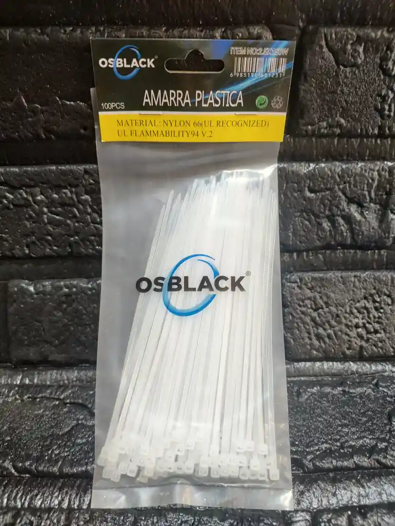 Amarra Plástica blanca 15cm largo 2.5mm ancho x 100unds