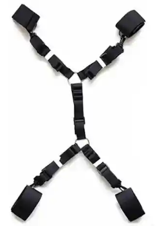 Experimenta y disfruta de juegos, fantasías que harán volar tu imaginación y subir ardientemente la temperatura de tú encuentros sexuales Color: Negro Incluye: 4 esposas Otros: Se ajusta al tamaño de la cama