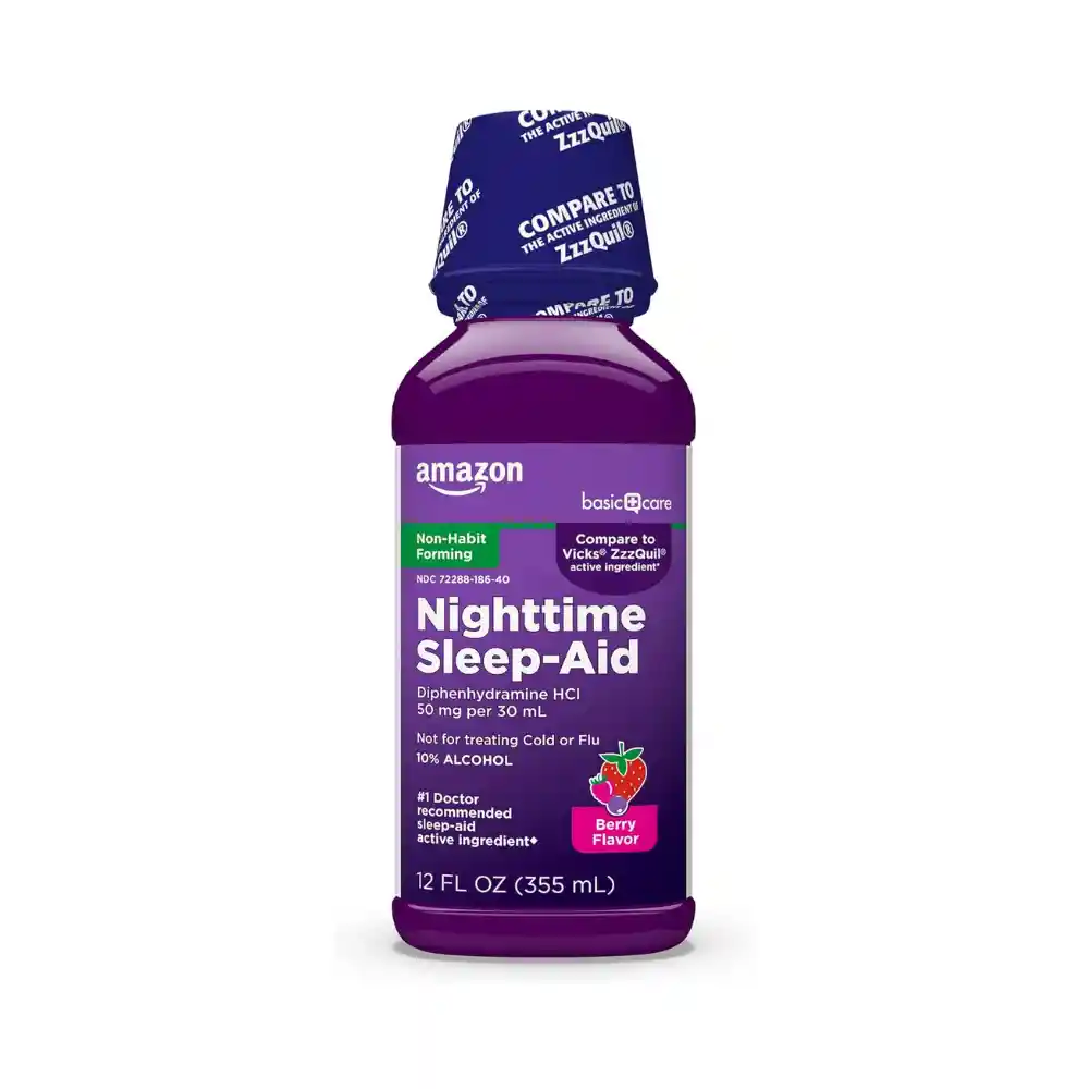 Amazon Basic Care Nighttime Sleep Aid Jarabe 355ml Sabor Frambuesa