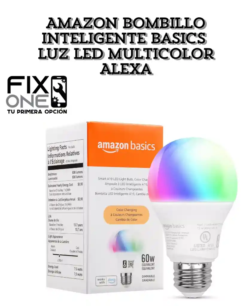 Tener una buena iluminación en los espacios que habitamos influye en la manera como nos sentimos, nos relajamos, trabajamos o estudiamos. Es por ello que el foco Amazon A19 de colores puede ser una excelente opción si quieres crear un ambiente agradable y funcional. Foco inteligente Este foco compatible con WiFi puede ser una excelente opción si buscas modificar los niveles de color y brillo en los distintos momentos del día. Es posible cambiar la iluminación según el gusto del usuario y también automatizar el encendido y apagado desde aplicaciones del teléfono y desde un asistente virtual. Actualización inteligente para mayor comodidad y eficiencia energética: controla tus bombillas inteligentes Amazon Basics usando tu voz o a través de la aplicación Alexa. Funciona exclusivamente con Alexa y no es compatible con Google Assistant y Apple HomeKit. Fácil de configurar con Alexa: atornilla la bombilla, abre la aplicación Alexa y comienza en minutos. TRANSFORMA TU ESPACIO CON COLORES BRILLANTES Crea tu estado de ánimo perfecto eligiendo entre 16 selecciones de color preestablecidas y niveles de brillo del 5 al 100 porciento. Controla desde cualquier lugar: controla tus luces inteligentes con la aplicación Alexa incluso cuando no estás en casa. Siéntete seguro haciendo que tu casa se vea ocupada incluso cuando estás fuera creando una rutina de Alexa para programar que las luces se enciendan y apaguen automáticamente. CONTROL DE GRUPO: Crea grupos en la aplicación Alexa para combinar luces juntas, lo que te permite controlar las luces por habitaciones con un solo comando de voz o a través de la aplicación Alexa. ADECUADO PARA CADA HABITACIÓN: Mejora tu hogar agregando luces inteligentes a cada espacio interior, incluyendo lugares húmedos como baños ✅Nuestros productos antes de ser enviados son probados ✅Imagen de referencia