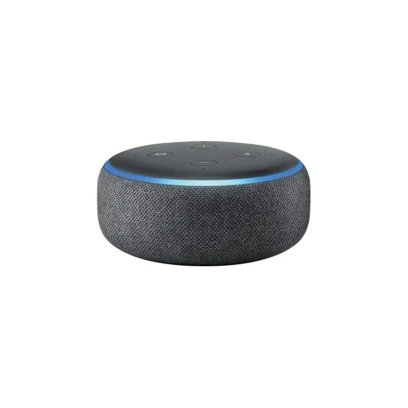 El nuevo modelo del Amazon Echo Dot ha sufrido una renovación tanto interior como exterior. Las versiones anteriores del Echo Dot, se basaron más en su funcionalidad que en su estética y su pequeño tamaño le permitía pasar desapercibido. En el Echo Dot 3 Generación, se ha renovado el exterior, para hacerlo destacar dentro del hogar con un diseño notablemente más grande que sus anteriores versiones, mucho más vistoso y que permita integrarse perfectamente en cualquier tipo de decoración. El diseño de esta nueva versión incorpora una nueva rejilla de tela alrededor del borde exterior con colores gris oscuro, gris claro y negro que le dotan de un toque mucho más elegante y moderno. En la parte superior del Echo Dot se encuentra la botonera del dispositivo que consta, únicamente de cuatro botones, a saber, subir y bajar el volumen, desactivar la matriz de altavoces y desactivar el asistente de voz Alexa. Además de los botones, el dispositivo incorpora un elegante aro de luz azul que se encenderá cuando interactuemos con el dispositivo o activemos el asistente Alexa. Funciones del Echo Dot (3 Generación) Como venimos mencionando, son muchas las tareas que puedes realizar con el Amazon Echo Dot 3 Generación, a través de comandos de voz con Alexa. Te resumimos algunas de esas funciones: Con el Echo Dot podrás reproducir tu música favorita, con tan sólo decirle a Alexa algo como Pon música Pop de actualidad, podrás escuchar la música a través del altavoz o altavoces conectados. Con las Skill de Alexa, podrás realizar compras en el Corte Inglés o realizar la compra de casa a través de Mercadona. Te permite también escuchar los titulares de las noticias más importantes del día mientras tú realizas alguna otra tarea del hogar o que te recuerde las citas que tengas programadas en la agenda para ese día. Además, Alexa puede ofrecerte todo tipo de información sobre lugares o negocios que necesites encontrar o encontrar para ti la ruta más rápida para llegar al trabajo existente en una ruta determinada. Son miles las funciones que podremos realizar a través del altavoz con su asistente de voz Alexa, y cuanto más interactuemos, mayor inteligencia irá adquiriendo, por lo que se hace casi imposible poder mencionar todo lo que puede hacer por nosotros.