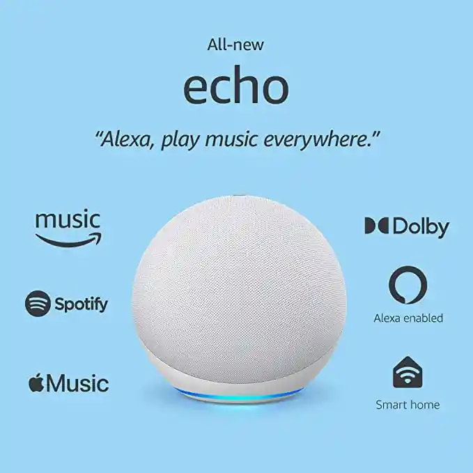 Nuevo look, nuevo sonido - Echo ofrece agudos claros, medios dinámicos y bajos profundos para un sonido rico y detallado que se adapta automáticamente a cualquier habitación. Controla por voz tu entretenimiento - Reproduce canciones en línea desde AmazonMusic, Apple Music, Spotify, SiriusXM, y más. Además escucha estaciones de radio, podcasts y audiolibros de Audible. Lista para ayudar - Pídele a Alexa que reproduzca música, conteste preguntas, ponga las noticias, revise el pronóstico del tiempo, establezca alarmas, controle dispositivos de smart home compatibles y más. Smart home simple - Con el hub incorporado, configura fácilmente productos Ring Smart Lighting (próximamente) o dispositivos Zigbee compatibles, para controlar luces, cerraduras y sensores con tu voz. Llena tu hogar de sonido - Con música multihabitación, reproduce música de forma sincronizada a través de los dispositivos Echo en diferentes habitaciones. O empareja tu Echo con el Fire TV para sentir que las escenas cobran vida con un audio de teatro en casa. Conéctate con otros - Llama a casi cualquier persona, con manos libres. Pasa por otras habitaciones instantáneamente o anuncia a toda la casa que la cena está lista. Diseñado para proteger tu privacidad - Fabricado con múltiples niveles de protección y controles de privacidad, incluyendo un botón para apagar el micrófono, que desconecta electrónicamente los micrófonos.