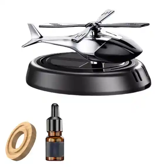 Regalo elegante para coches elegantes. Alimentado por energía solar Fragancia de larga duración Diseño elegante y duradero Con un elegante diseño de helicóptero, también está elaborado con una aleación de zinc y aluminio duradera, lo que garantiza un uso duradero y resistencia al desgaste y a las altas temperaturas. Ecológico, no necesita pilas Este ambientador aprovecha la energía solar para girar automáticamente su hélice, lo que garantiza una difusión continua del aroma sin necesidad de pilas ni carga, lo que lo hace energéticamente eficiente y respetuoso con el medio ambiente. Instalación estable y fácil Diseñado para una colocación estable en su tablero, permanece seguro en su lugar sin obstruir su vista. Base adhesiva que se ajusta perfectamente a la consola central de tu coche. Fragancia duradera Disfrute de un ambiente fresco con tabletas de aromaterapia de origen vegetal natural que eliminan eficazmente los olores y proporcionan un efecto duradero Regalo perfecto Compacto y versátil, este ambientador es ideal para coches, oficinas y más. También es un regalo elegante para amigos y familiares.