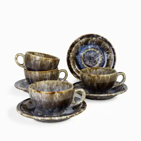 Set Ambiente Gourmet Contiene 8 Unidades. Platos 4 Und + Pocillos 4 Und. Capacidad de 120 mL. Pieza de la Vajilla Costellazione Inspirada en la Naturaleza la Arquitectura y el Arte Mediterráneo. Los Tonos Azules Recuerdan el Cielo y el Mar de Esta Región. Set de Taza y Plato Para Ofrecer Bebidas Calientes Luego de Cada Comida o Durante Las Onces. País de Origen: China. Importador: Distribuidora Matec S. A. S.