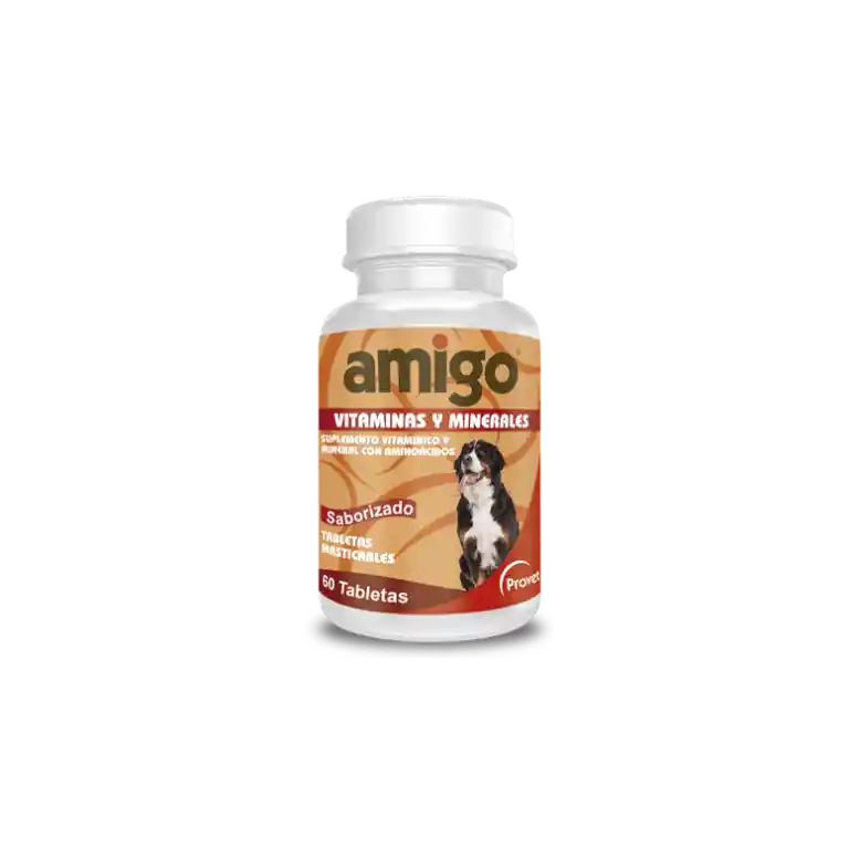 Amigo Calcio es un suplemento alimenticio diseñado para complementar la dieta de mascotas que no reciben una alimentación completa. Está especialmente formulado para apoyar el reestablecimiento de la homeostasis en perros y gatos que están enfermos o en recuperación de infecciones, parásitos, problemas nutricionales u otras condiciones. Su formulación balanceada contribuye a mejorar la apariencia externa y la condición corporal, asegurando el correcto funcionamiento fisiológico y metabólico de las mascotas. Previene la pérdida de calcio en edades avanzadas Promueve una buena función ósea, fortaleciendo los huesos y previniendo osteoporosis Incluye vitamina D3, esencial para la absorción de Calcio y Fósforo Desarrollado con complejo B como reconstituyente Deliciosas tabletas masticables que pueden ser administradas como premio Ideal para perros y gatos de todas las edades, razas y tamaños