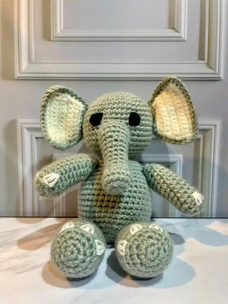 Muñeco de apego, Elefante tejido a mano con lana antialérgica, mide 20 cm sentado color gris, "mensaje personalizado" dejar mensaje en el chat