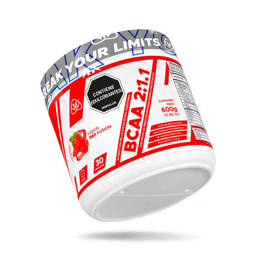BCAA 2:1.1 es un alimento en polvo a base de maltodextrina con polvo de fresa pulverizada, BCAA´s y EEA´s. Con sabores a: red fusion, watermelon candy y gulupa ice. EndulzaBCAA 2:1.1 es un alimento en polvo a base de maltodextrina con polvo de fresa pulverizada, BCAA´s y EEA´s. Con sabores a: red fusion, watermelon candy y gulupa ice. Endulzado con stevia, edulcorante no caloríco. SIN CONSERVANTESdo con stevia, edulcorante no caloríco. SIN CONSERVANTES