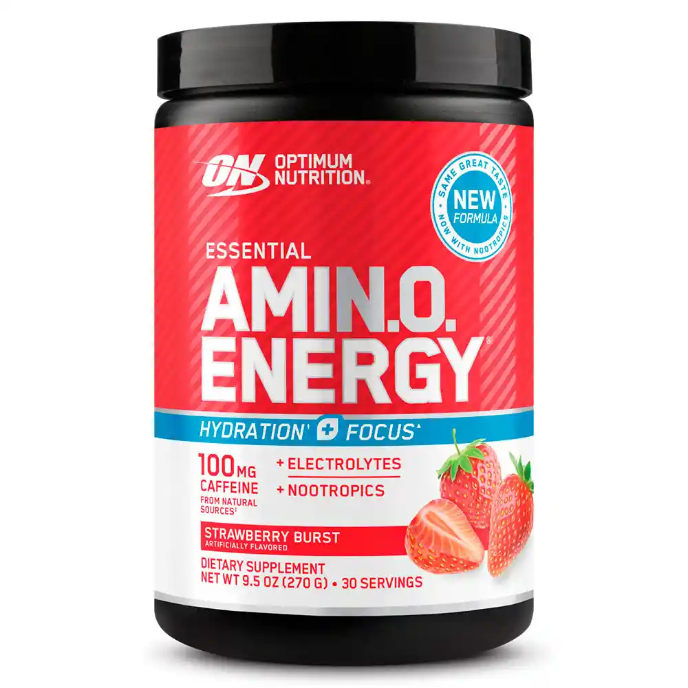 Si buscas energía sostenida, concentración mental y una hidratación avanzada en una sola bebida, Amino Energy Hydration Optimum Nutrition es la solución definitiva. Esta fórmula todo en uno ha sido diseñada con precisión para acompañarte en cada entrenamiento, partido o actividad intensa del día a día. Ya sea antes de entrenar o durante la actividad, proporciona el impulso ideal sin comprometer tu bienestar. Por eso, te ofrece energía, concentración e hidratación. Su poderosa mezcla 3 en 1 combina 100 mg de cafeína natural con 100 mg de CognitQ, un nootrópico de última generación. Además, cuenta con 200 mg de l-teanina, conocida por promover el equilibrio mental y la respuesta saludable al estrés. Todo esto sin una pizca de azúcar. Amino Energy Hydration aporta 5 gramos de aminoácidos esenciales que ayudan al soporte muscular y a la recuperación, junto con electrolitos clave que reemplazan lo perdido por el sudor y ayudan a mantener la función muscular y la hidratación. La energía e hidratación que necesitas Una de sus grandes ventajas es la versatilidad: se puede tomar en cualquier momento del día cuando necesites un “extra” de rendimiento sin recurrir a bebidas azucaradas ni estimulantes artificiales. La cafeína proviene de fuentes naturales, lo que la hace más amigable para quienes buscan una alternativa más limpia. Esta fórmula ha sido desarrollada por expertos en nutrición deportiva y sometida a rigurosas pruebas de calidad y seguridad, incluyendo controles de sustancias prohibidas. Con el respaldo de Optimum Nutrition, la marca número 1 del mundo en nutrición deportiva, puedes confiar en cada scoop. Los sabores Strawberry Burst y Sun-Kissed Citrus ofrecen una experiencia refrescante, perfecta para quienes no comprometen sabor por funcionalidad. Modo de uso recomendado Mezclar dos scoops (9 g) en 300–350 ml de agua o jugo. Debes agitar por 30 segundos y consumir 20–30 minutos antes de la actividad para mejores resultados. No exceder 6 scoops en 4 horas ni 8 scoops en 24 horas. No recomendado para menores de 18 años, mujeres embarazadas, en período de lactancia, o personas sensibles a la cafeína. Consultar con un médico si estás bajo tratamiento médico o tienes condiciones como hipertensión. No combinar con alcohol ni otras fuentes de cafeína. Puede causar una sensación temporal de hormigueo o enrojecimiento por la beta-alanina.