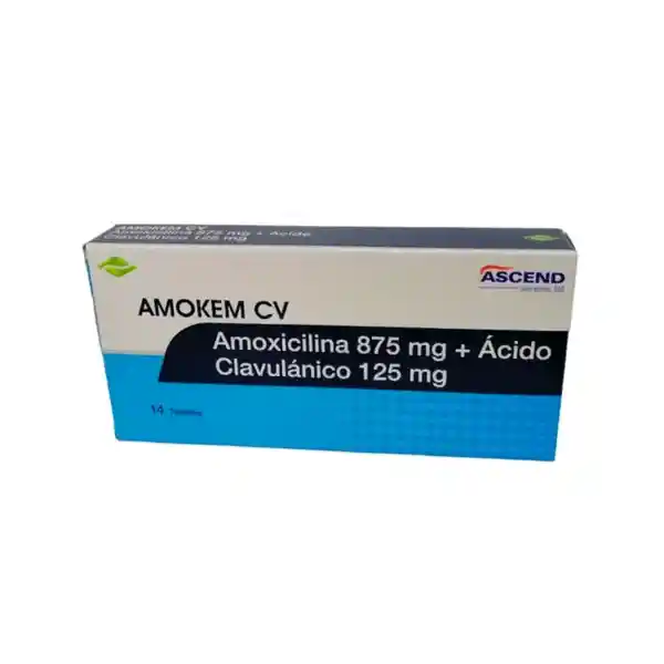 Amoken Cv Amoxicilina 875 Mg + Ácido Clavulánico 125 Mg 14 Tabletas