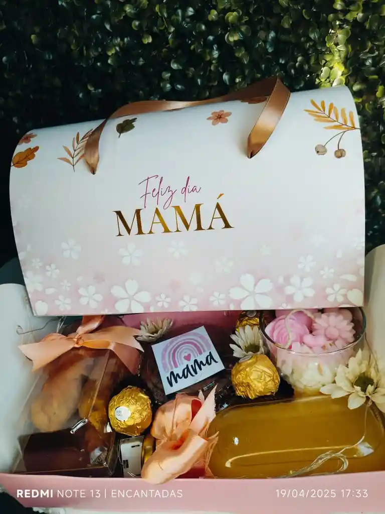contiene: - Deditos de Queso - Envase con frutos secos - Ferrero x 3 - vela Aromatica - jugo natural - Caja decorada