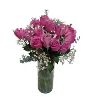 Florero de vidrio decorado con rosas ( color a disponibilidad) y gypsophilia que simbolizan el amor incondicional. comunícate con nosotros para saber que colores de rosas puedes elegir