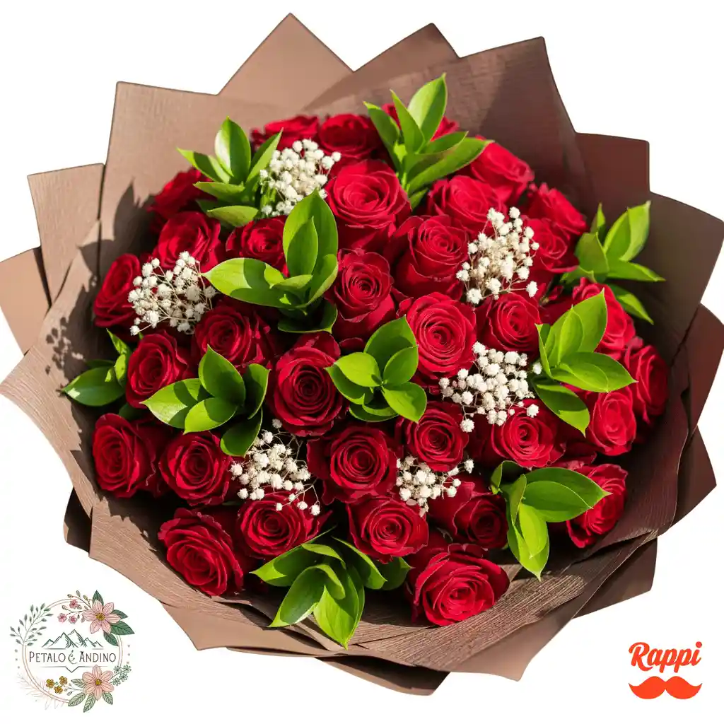 Este espectacular ramo es una declaración de amor apasionado y profundo, con una abundancia de vibrantes rosas rojas que capturan la esencia de la devoción. Cada rosa se entrelaza con toques de delicada gipsofilia, que añade una ligereza etérea, y se realza con el follaje brillante del Ruscus, aportando un contraste de verdor y volumen. (el color del papel puede variar según la disponibilidad, garantizando siempre una presentación sofisticada), este ramo es el obsequio ideal para aniversarios, pedidas de mano o cualquier ocasión en la que se desee expresar un amor inolvidable e inmenso. Flores y Elementos del Ramo: 48 Rosas rojas Gipsofilia Ruscus