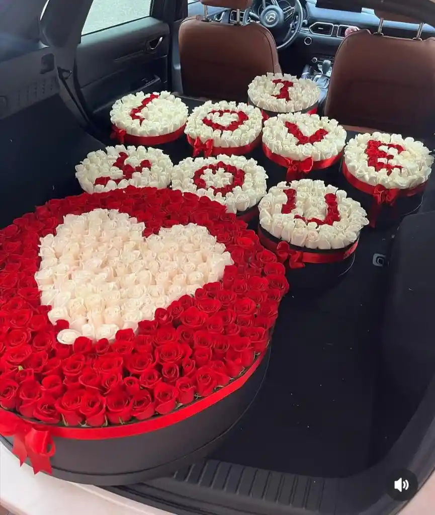 Esta espectacular colección de arreglos florales en cajas redondas es la expresión máxima de amor y dedicación. Cada caja contiene rosas cuidadosamente dispuestas en patrones de colores rojo y blanco, con mensajes como "LOVE YOU" y un gran corazón que simboliza ternura y pasión. Ideal para sorprender en ocasiones especiales como aniversarios, propuestas de matrimonio o celebraciones de San Valentín. para que nos regales tu mensaje de dedicatoria escribenos al whatsapp:3171942265