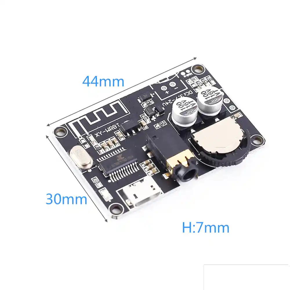 Nombre del producto Decodificador Bluetooth Modelo del Producto XY-WRBT Tension de trabajo 3.7 ~ 24VDC Version Bluetooth 5.0 Distancia de transmision 15 m (visible y sin blindaje) Relacion señal / ruido =90dB Distorsion =-70dB Doble canal (estereo Interfaz de audio Interfaz de audio de 3.5 mm Mecanismo de proteccion modular Proteccion de conexion posterior de la fuente de alimentacion LA COMPRA INCLUYE: 1X AMPLIFICADOR AUDIO BLUETOOTH 5.0