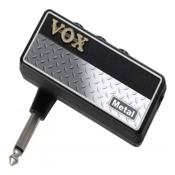 Amplificador de guitarra compacto para conectar vía auriculares. opcionalmente puede ser usado con el amplug cabinet. Configuración sencilla para su fácil manejo, funciona a baterías. * Diseño clásico y emblemático de vox metal Salidas 1x Jack 3.5 Mm Audífonos, 1x Jack_3.5mm_Aux Entradas 1x Jack_1/4"_ Instrumento Controles GAIN, TONE, VOLUMEN