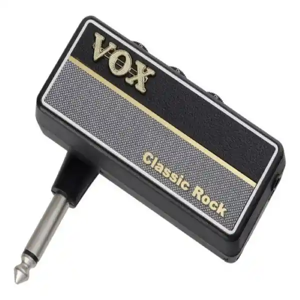 "Classic Rock" ofrece el clásico crujido de un amplificador de 100 W fabricado en el Reino Unido. Para usar el amPlug del tamaño de la palma de la mano, simplemente conéctelo a su guitarra y tome sus auriculares. Tocar tu guitarra o bajo con amPlug da como resultado un sonido de amplificador serio que rebosa presencia. El Vox Amplug 2 toma el diseño original de amplug y lo mejora con un conector giratorio de 180 grados, sistema de apagado automático, efectos esenciales en cada una de las opciones de guitarra y pistas de ritmo para el bajo Amplug. Esta versión de Classic Rock busca ofrecer una recreación auténtica de un gran amplificador británico de 100 vatios directamente a través de sus auriculares. El nuevo control FX en el Vox Amplug 2 le brinda algunos efectos adicionales a su sonido que comúnmente se usarían con uno de estos amplificadores de sonido clásicos. Puede conectar el Amplug directamente a su guitarra y luego conectar sus auriculares para obtener un sonido de guitarra amplificado directamente en sus oídos sin amplificadores voluminosos ni cables engorrosos. Esto es ideal para practicar en casa, o antes de subir al escenario o en cualquier momento que desee practicar con unos auriculares. Con el amPlug que proporciona hasta 17 horas de funcionamiento con batería, podrá jugar en cualquier momento y en cualquier lugar. Dado que no se necesita un cable de guitarra, es una excelente manera de practicar en casa o de calentar antes de una actuación en vivo o durante una gira. Además, hay una entrada AUX para su reproductor MP3, para que pueda tocar junto con sus canciones favoritas.