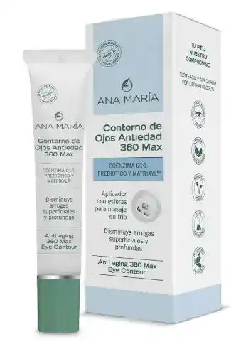Contorno de ojos antiedad con acción 360 en líneas de expresión para una mirada radiante. Piel más firme y más densa, contiene Q10, Matrixyl® y Prebiótico que fortalece la barrera de la piel delgada del área de los ojos. Disminuye arrugas en profundidad y volumen. Redensifica el área de los ojos. Piel más firme, densa y lisa.