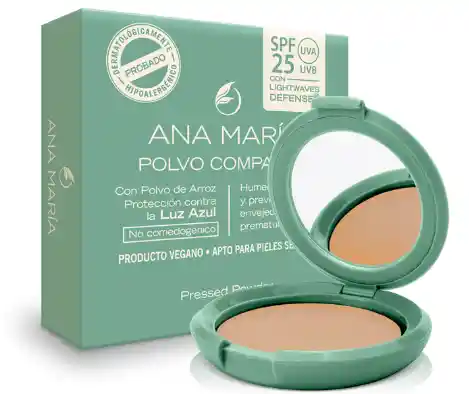 Polvo facial compacto elaborado con fino polvo de arroz que no reseca la piel ni obstruye los poros.