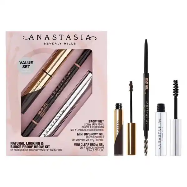 Kit Anastasia Beverly Hills Contiene 3 Unidades. Incluye Brow Wiz 85 mg + Mini Dipbrow Gel 2.2 g + Mini Clear Brow Gel 2.5 mL. Un Lápiz Retráctil Ultra Fino Para Las Cejas Que Crea Trazos Precisos Que Imitan Pelos Naturales. Este Lápiz Best Seller Tiene Una Fórmula Que Combina la Cantidad Perfecta de Cera y de Color Para Lograr Una Alta Pigmentación un Acabado Natural y la Apariencia de Cejas Más Tupidas. Es de Larga Duración no se Corre y se Desliza Fácilmente Sobre la Piel. Trae un Cepillo Spooley en la Parte Posterior Para Difuminar el Producto y Dejar un Efecto Perfeccionado. Una Versión Tamaño Mini Para Viajes Del Dipbrow Gel. Es un Gel Para Cejas Altamente Pigmentado Con Una Fórmula de Larga Duración y a Prueba de Agua Ideal Para Crear Cejas Más Llenas y Definidas. Es un Producto Para Rellenar Las Cejas Que Ofrece Una Cobertura Completa y Color Pigmentado.