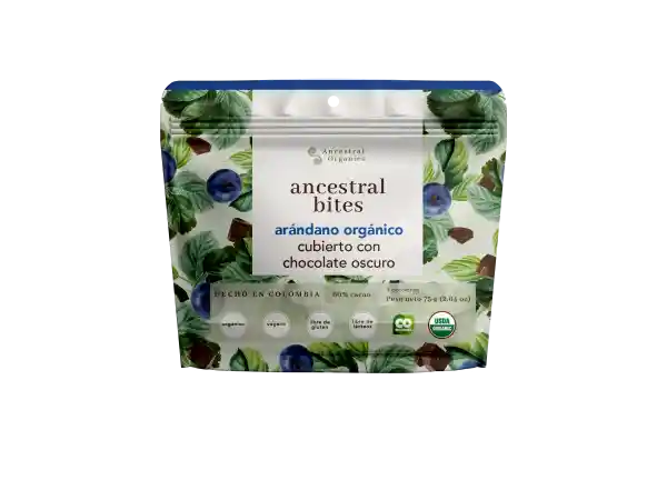 Arándanos Orgánicos Cubiertos Con Chocolate Oscuro Orgánico al 60%.
