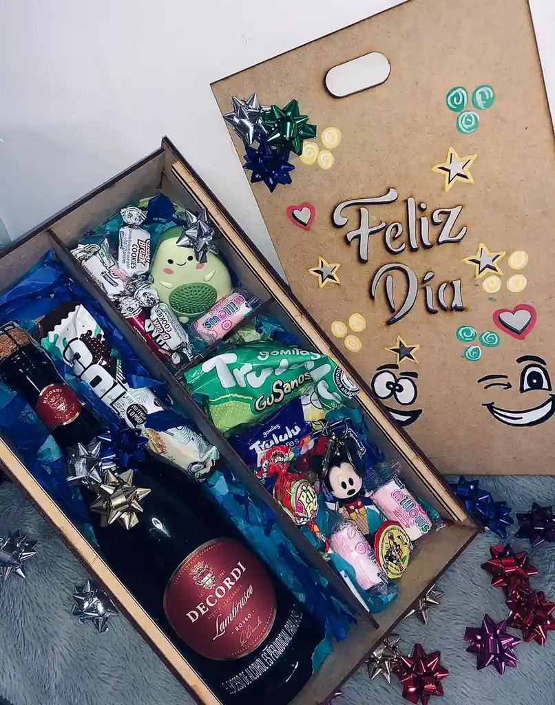Caja vinera 1 Mini parante aguacate 3 Confites choco break 4 Masmelos 1 Trululu sabores 1 Galleta bridge vainilla 1 Bombom 1 Gela play 1 Llavero 1 Chao de fresa 1 Gol de coco 1 Gomitas 1 Vino DECORDY
