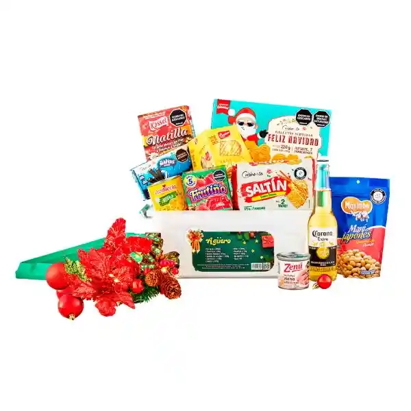 Contiene 12 Unidades. La Ancheta Especial ha Sido Cuidadosamente Seleccionada Para Ofrecer Una Variedad de Productos Deliciosos y de Alta Calidad Ideales Para Compartir en Cualquier Ocasión Especial. Cerveza Corona Botella 330 mL + Panettone Bauducco Frutas 80 g + Galletas Cuisine & Co Saltin Salada 175 g + Galleta Cuisine & Co Navidad Surtidas 2 Und x 110 g + Salchicha Viena Limón Zenu Edición Especial 150 g + Natilla Kassel Arequipe 300 g + Maíz Predilecta 280 g + Gelatina Frutino Fresa 14 g + Maní Japonés Manitoba 150 g + Barquillos Cuisine & Co Wafer Cookiescream Caja 43 g + Caja Hades 9 L - Agüero 2024.