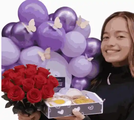 Contenido: Combo Ancheta Alegría + Rosas Ramo 1 Jugo Natural 1 Yogurt 2 Paquete de Gomas 2 Galletas Integrales 1 Mini Postre 1 Cocosette 1 Maní 1 Sándwich Jamon y Queso o Wafles 2 Manzanas 1 Choco ramo 1 Porción de Frutas 1 Bandeja de Madera 1 Decoración Personalizada 1 Tarjeta Personalizada 1 Ramo de rosas Rojas o Fucsia A su Elección
