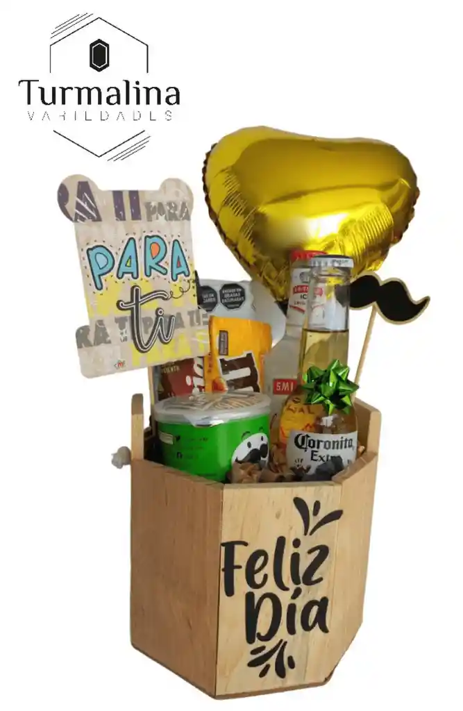 Hermosa Ancheta Lista para Regalar Para hombre. Incluye: 1 Base de madera 1 Globo tamaño R10 1 Pin Para Ti 1 Smirnoff 275 ml 1 Cerveza Coronita 1 Papas Pringles 40 gm 1 Chocolate MM 49.3 g 1 Maní Especial 40gr 1 Barquillo Piazza Deleite Bandeja 31 gr Nota: Algunos Productos Pueden Variar en sabor de acuerdo a disponibilidad del productos.