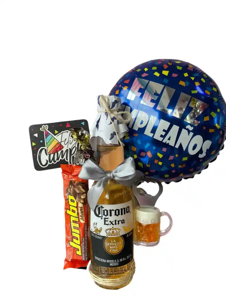 Ancheta motiva cumpleaños: Contenido: Cerveza corona Destapador en forma cerveza Chocolatina jumbo maní mediana Pin feliz cumple Globo Feliz Cumpleaños ... Decoración general