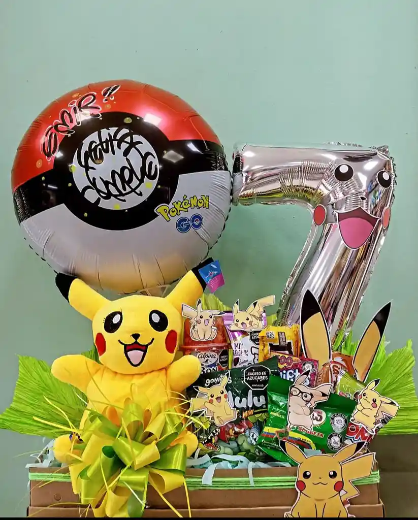 Ancheta personalizada con peluche, globos y dulces