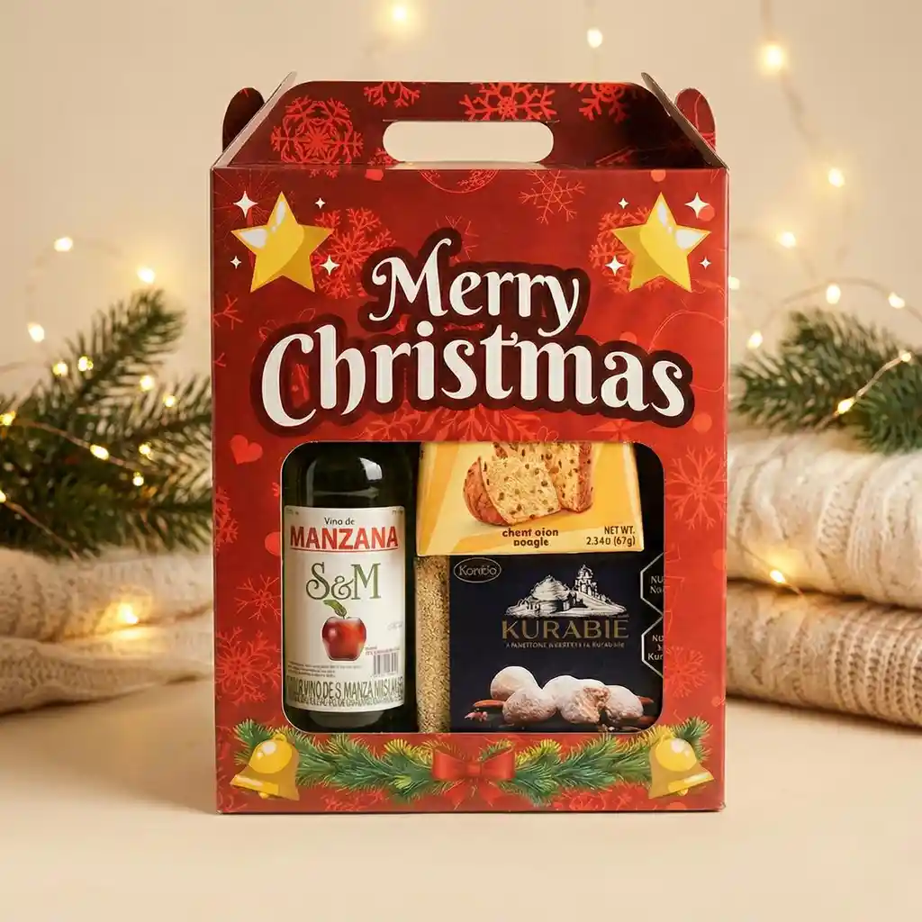 Ancheta con vino de manza, galletas de mantequilla y panettone