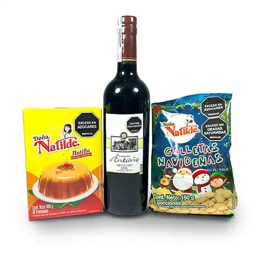 CONTIENE NATILLA AREQ. DOÑA NATILDE *300g VINO 0°CASAS DE ANTAÑO*750ml SABOR UVA GALLETA DOÑA NATILDE BOLSA *150g BOLSA NAVIDEÑA