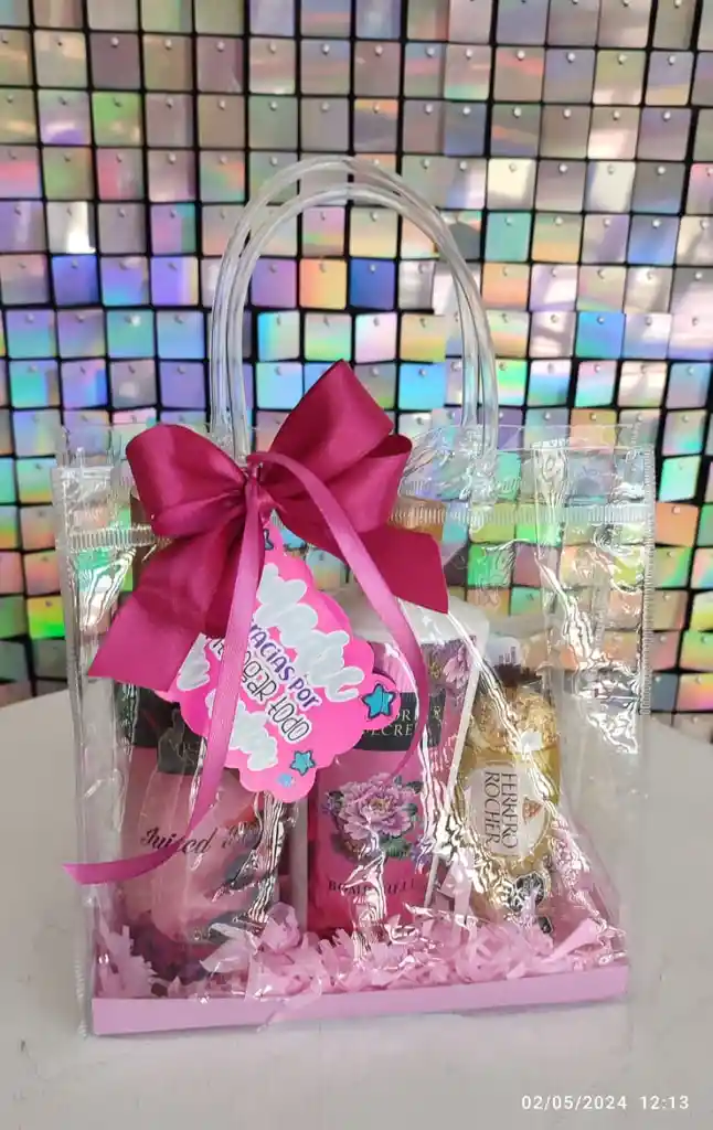 Ancheta Dia De Las Madre con Acetato. contiene un splash y crema de manos de victoria secret, chocolate ferrero x3, pin del dia madre.