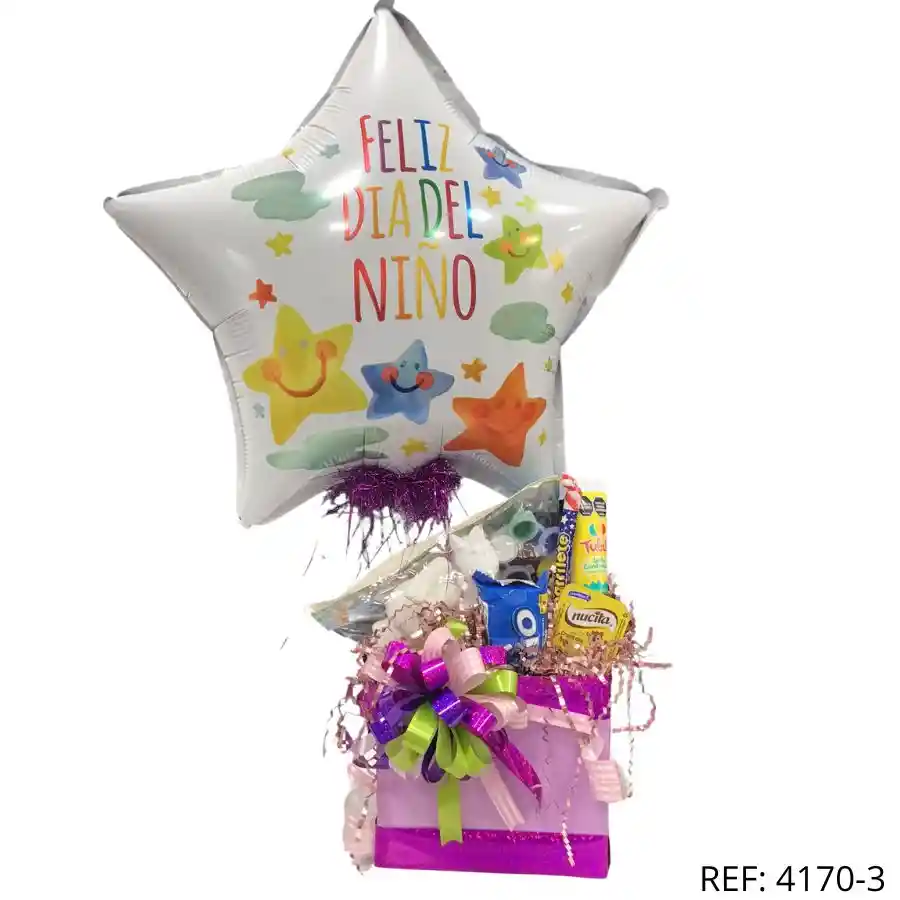 Detalle infantil con set de pintura, lechera, Oreo, Nucita, barrilete, globo 18", moño y caja decorada.