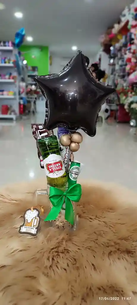 Vaso Vidrio Cervecero, Cerveza Stella, Destapador, Mani, MyM, globo metalizado 9¨ personalizado con el mensaje que desees, colores y mensaje sujeto a cambio.