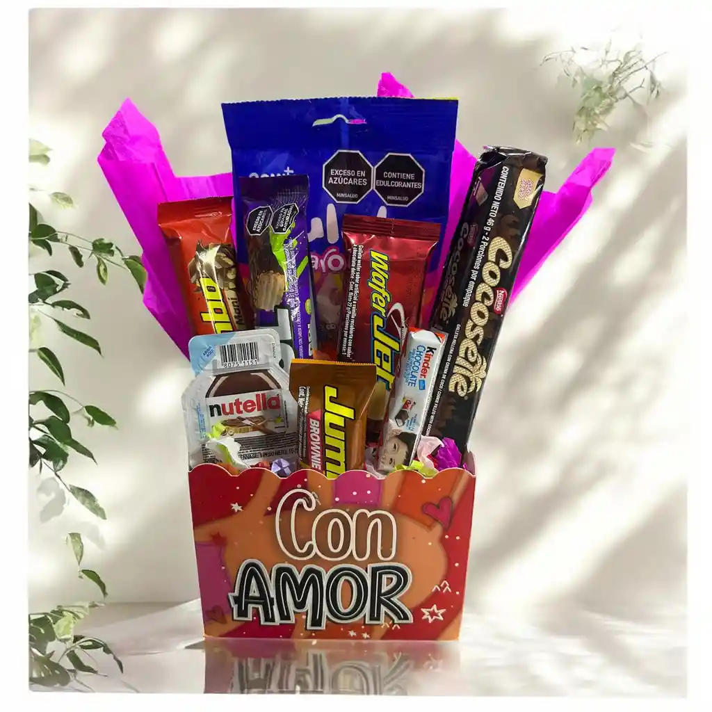 Ancheta ideal para regalar en esa fecha especial. Contiene gomitas, jumbo mediana, chocolatina gol, cocosette, jumbo mini brownie, mini nutria, esfer jet y una deliciosa chocolatina Kinder. AL REALIZAR TU ORDEN, ESCRIBENOS Y ARMA TU ANCHETA AL GUSTO.
